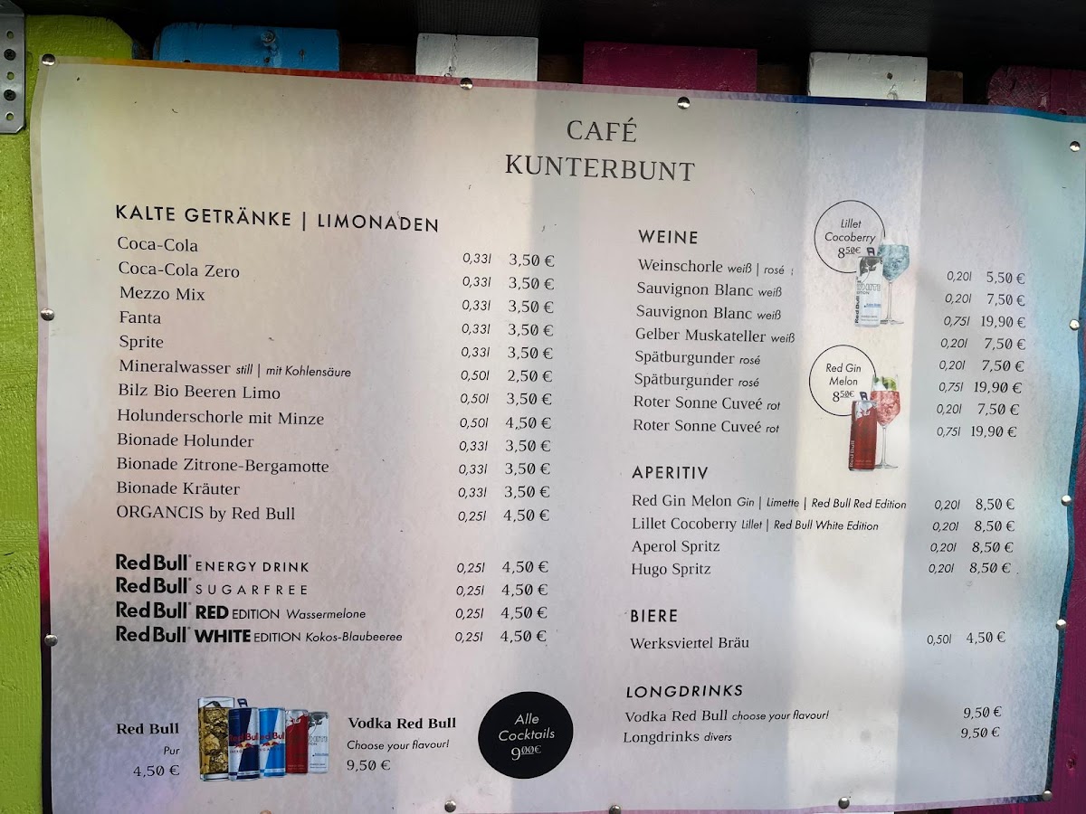 Welcome to Cafe Kunterbunt, a vibrant gem nestled in München at Atelierstraße 4. This cafe stands out not only for its eclectic atmosphere but also for its impressive menu that caters to diverse tastes. Guests rave about the expertly crafted Espresso Martini and refreshing Spritz, a delightful way to kick off your visit.